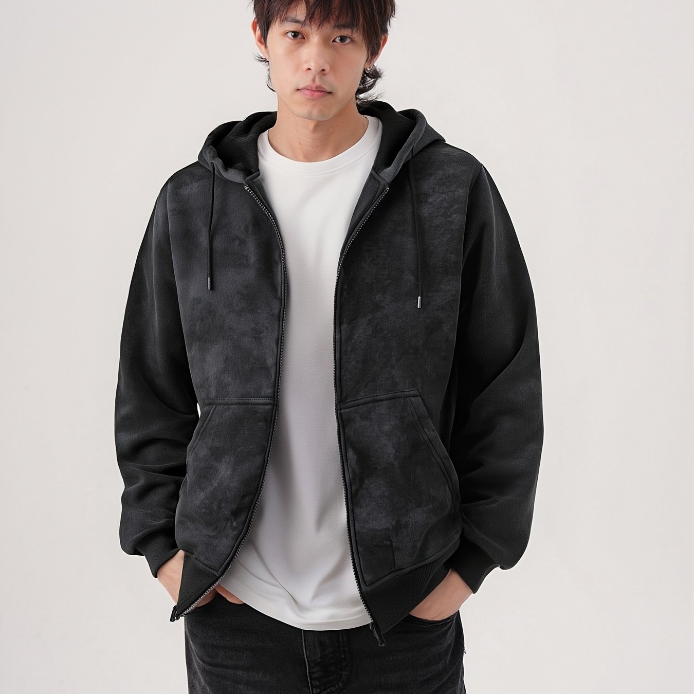 TEMU 남성용 겨울용 두꺼운 플리스 후드 가디건 캐주얼 스포츠 수트