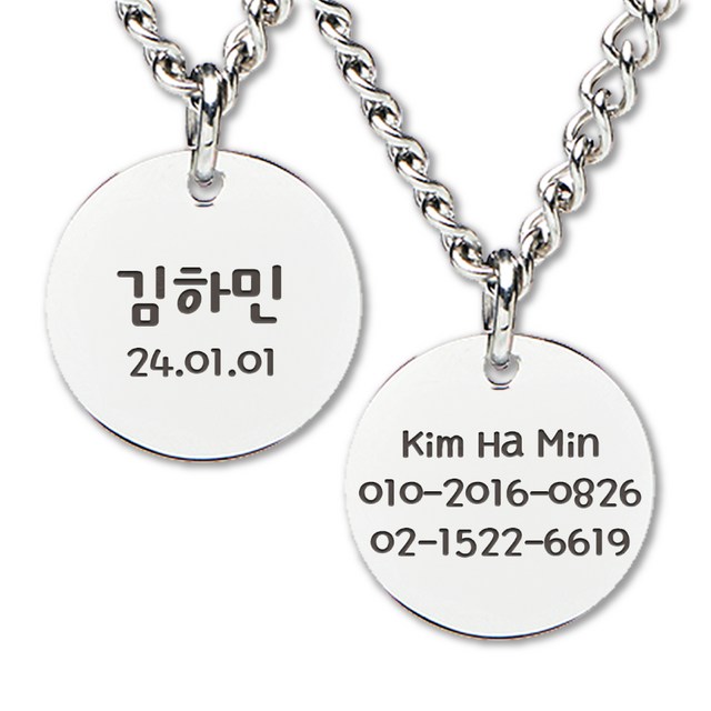 미아 목걸이 실종 실버 주얼리 어르신 악세사리 써지컬 인식표 예방 각인 배회 노인 방지