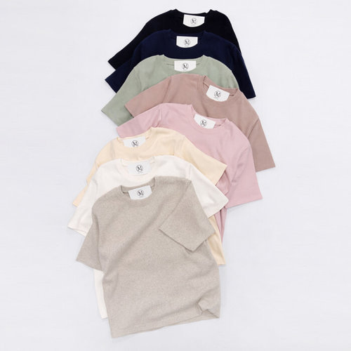 미즈큐즈 / 피치기모 라운드넥 반팔 티셔츠 베이직 기본기장