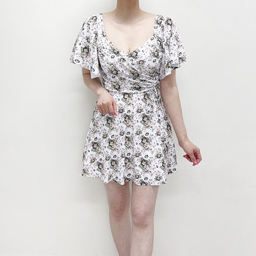 미즈큐즈 / 66 100까지 플라워 꽃나염 셔링 팔뚝살 커버 원피스