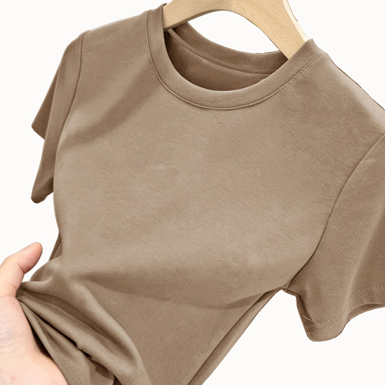 TEMU 여성용 라운드넥 반팔 티셔츠 - 중간 신축성의 단색 베이스 레이어 탑, 블라우스와 함께 착용 불가, 체형에 맞는 봄/여름 레이어링용, 캐주얼 및 드레시웨어, 손세탁 가능한 우아한 베이직 티