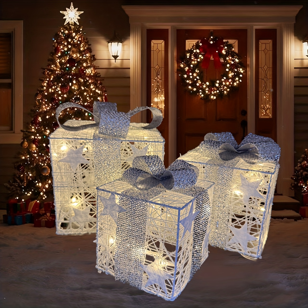 TEMU 3개 세트 빛나는 크리스마스 별 선물 상자, 크리스마스 트리, 집, 마당 및 잔디밭을 생일 및 축제 파티를 위한 장식에 완벽합니다. 이 선물 조명은 축하 분위기를 조성하고 감사 표현에 이상적입니다 (3 AA 배터리)