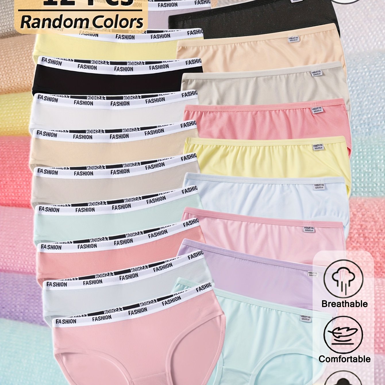 TEMU 12개입 여아용 신축성 좋은 편안한 팬티 | 귀여운 사탕색 패션 속옷, 미드라이즈 브리프, 캐주얼 스타일, MultiLuv 브랜드