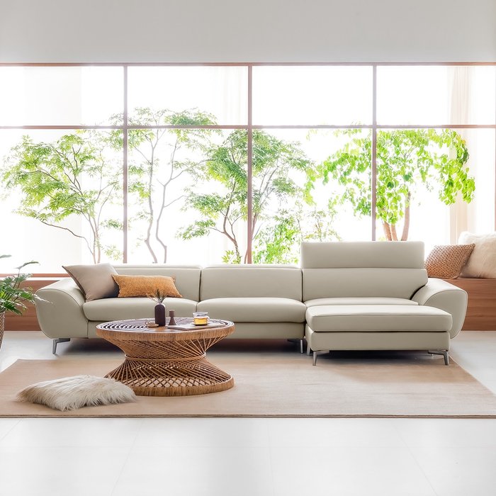 봄소와 진이 4인용 벨라니 통가죽 헤드레스트 소파