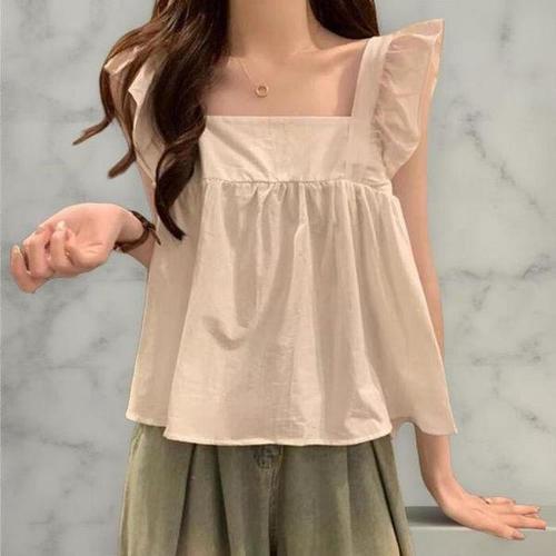 [신상오픈런]여성 프릴 리본 스트랩 플레어 나시 블라우스 러블리 스타일