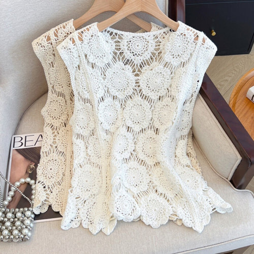 보니제이 / 2color 비치커버 펀칭 여름 뜨개 민소매 니트 블라
