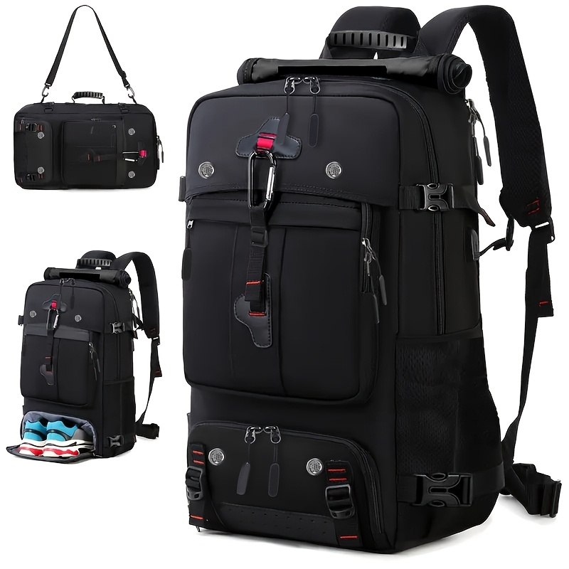 TEMU 17.3인치 노트북을 위한 신발 수납 공간이 넉넉한 넉넉한 여행용 백팩, 통근을 위한 스타일리시한 디자인, 아웃도어 하이킹 및 캠핑에 적합, 다용도 3-in-1 토트백