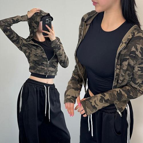 [오너클랜]인기상품 카모글램집업 여성흐티 크롭 밀리터리룩 핑거홀 아우터 긴팔 슬림 [WFJJOIK_260321]