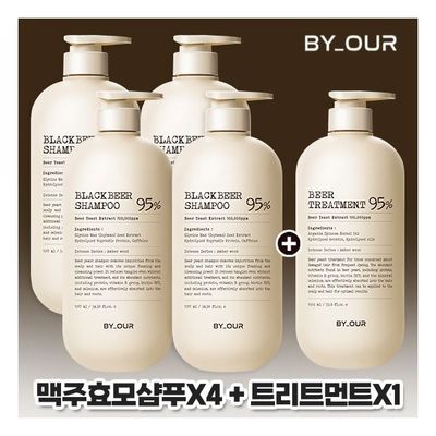[바이아우어] 총5L이상[맥주효모짐승용량샴푸] 대용량 블랙비어 샴푸1,017ml * 4개 + 트리트먼트 1,000ml * 1개