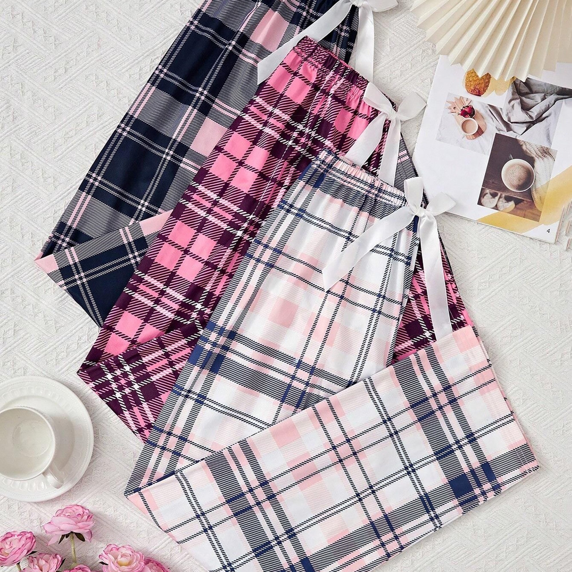 TEMU 여성용 보우 벨트와 체크 프린트가 있는 세트. 편안한 소재와 루즈핏으로 쾌적한 하루를 선사합니다. 정교한 체크 패턴이 돋보이는 신축성 있는 허리밴드 팬츠로 포근하고 편안한 앙상블을 완성하세요