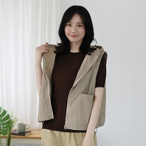 여성 캐주얼 조끼 후드 반팔 맛있음 정품 집업 스트링 나시 BE2