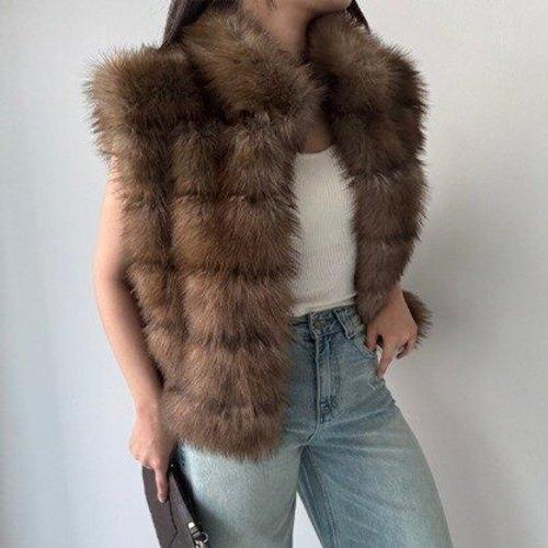 여자 FW 귀여운 잔주름 인조밍크 소프트퍼 조끼