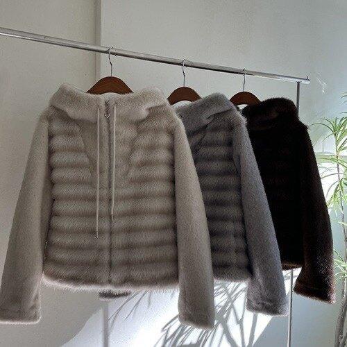 루즈핏 페이크 밍크퍼 후드 집업 방한점퍼 Women's Jacket 뉴타임즈 C127Y384