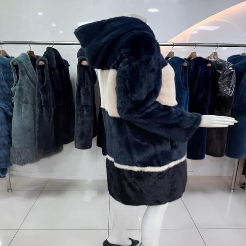 41FAUX FU R밍크후드코트