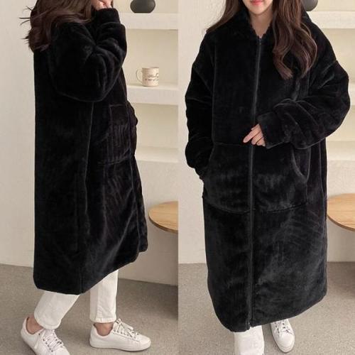 JUSTFEELING 여성코트 후드점퍼 학생 주니어 부드럽고 겨울 털점퍼 밍크라이크 루즈핏 아우터