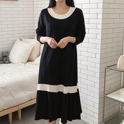 워너비홈 긴팔 빅사이즈 편안한 원피스 홈웨어 간절기 롱치마