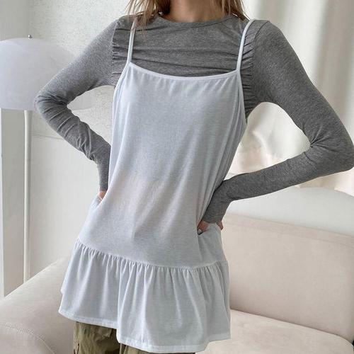 레이어드 밑단 프릴 끈나시 러플 여성 이너나시