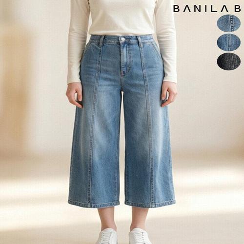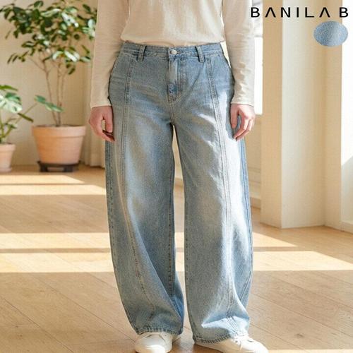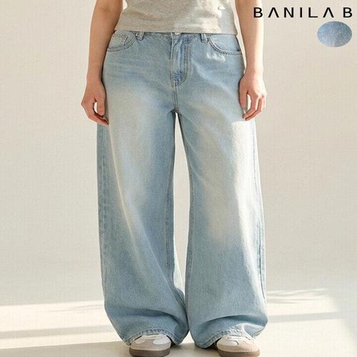 [바닐라비] 뮤트 워싱 밴딩 와이드 데님 팬츠