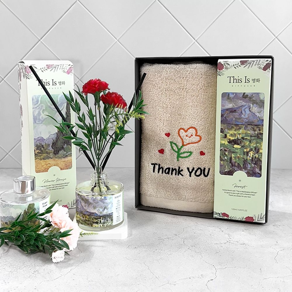 가정의달 명화 디퓨저 카네이션 타올 선물세트(디퓨저120ml1+땡큐플라워1)