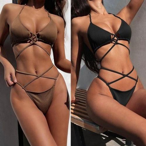 세트 여성 비치웨어 여름 바다 수영복 골지트랩비키니 WFIJXSY