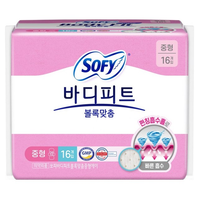 쏘피 바디피트 볼록맞춤 생리대 16x5팩 대형 중형 소형 오버나이트 슈퍼롱 무표백 모음전