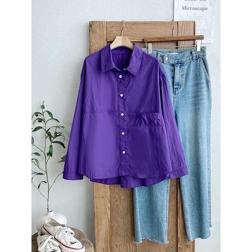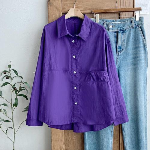 여성 카라넥 포켓 언발 무지 면100 간절기 남방 셔츠 DGB-WBL-4118-바이올렛