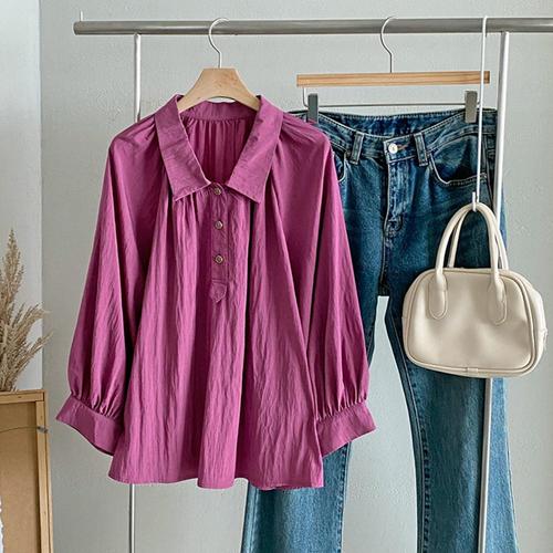 여성 카라넥 절개포켓 바스락 루즈핏 셔츠 DGB-WBL-4334-바이올렛
