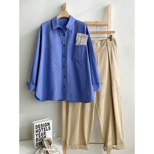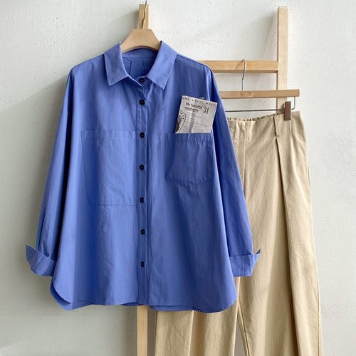 [#자체제작]여성 레트로 베이직 코튼 셔츠