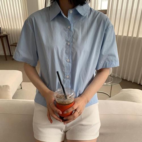 [다잇템]여자 바이올렛 반소매 하늘색 크롭셔츠 셔츠