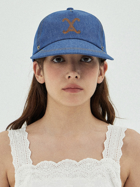 [바잘] VA 커브드 데님 스티치 디테일 5패널 볼캡 라이트인디고