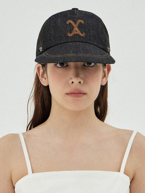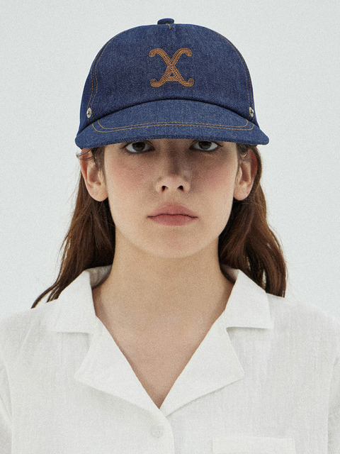 [바잘] VA 커브드 데님 스티치 디테일 5패널 볼캡 인디고