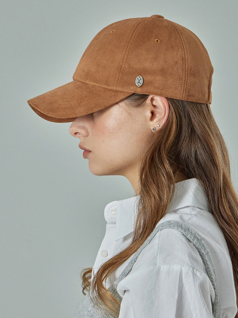 [바잘] VA 커브드 오벌 메탈 스웨이드 볼캡 브라운