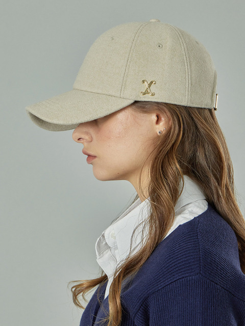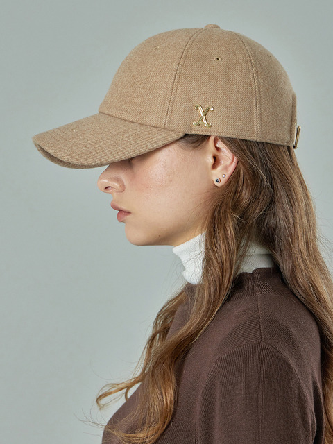 [바잘] VA 커브드 스터드 링크 모직 볼캡 베이지