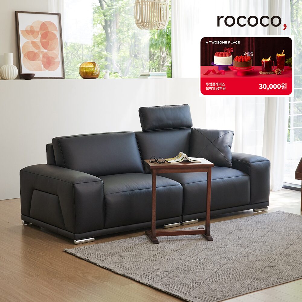 로코코 바젤 카우 세미 아닐린 전체 가죽 3인 소파
