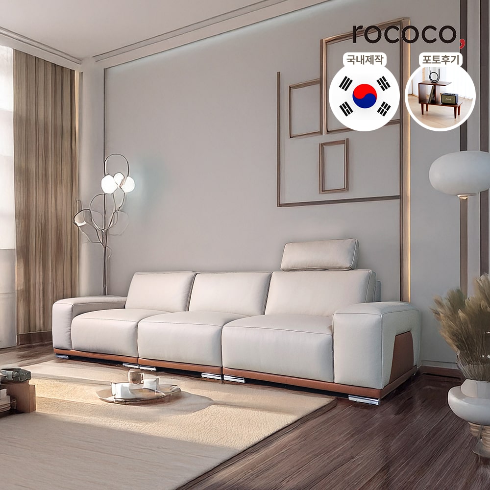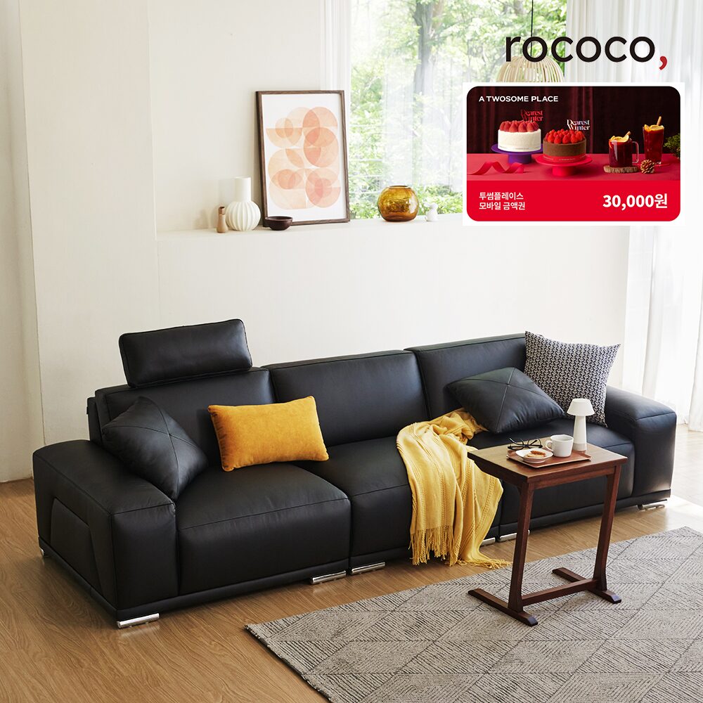 로코코 바젤 카우 천연면피가죽 4인 소파