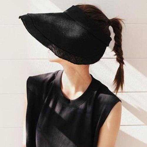 밀짚오픈선캡 여성 넓은챙 바캉스 썬캡 1P 뒷리본 바캉스 오픈 모자