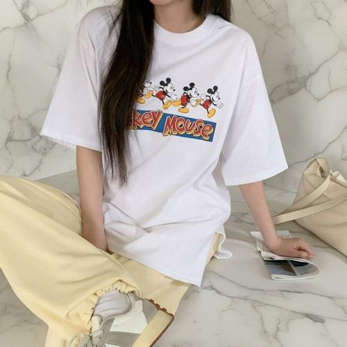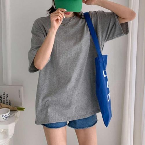 [미라클세븐]여성용 일상 티셔츠 박스핏 오버사이즈 면 반팔 라운드넥