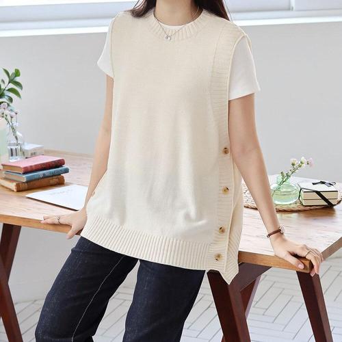 [다잇템]여자 민무늬 박스핏 레이어드용 U넥 니트조끼