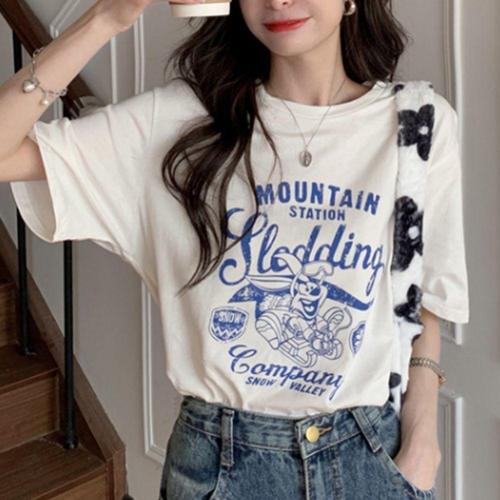 [오너클랜]인기상품 프린팅 포인트 데일리 여성 박스핏 반팔 티셔츠 [WF8CE92_260403]