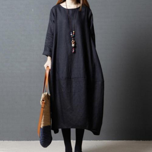 여성 린넨 박시 원피스 롱 스커트 간절기 빅사이즈 WFJ4SBN