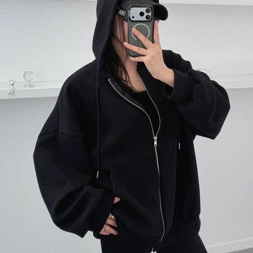 [옷자락] 여자 쓰리피스 나시 박시 봄후드집업 부츠컷팬츠 세트