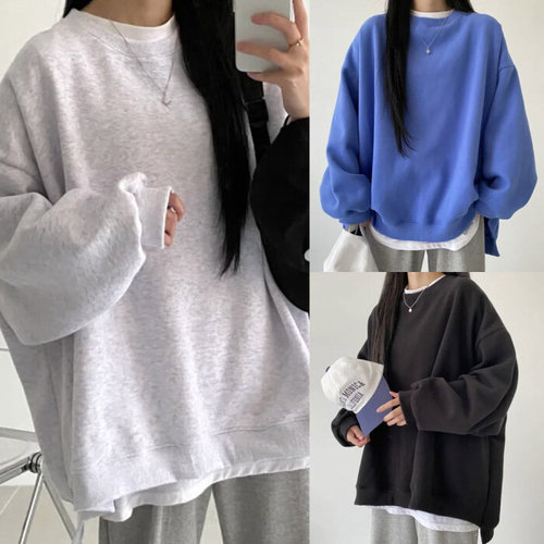 무료배송/균일가★기모 롱 맨투맨 후드티 루즈핏 빅사이즈 기모 롱 맨투맨 여성 기모맨투맨 박시 티셔츠
