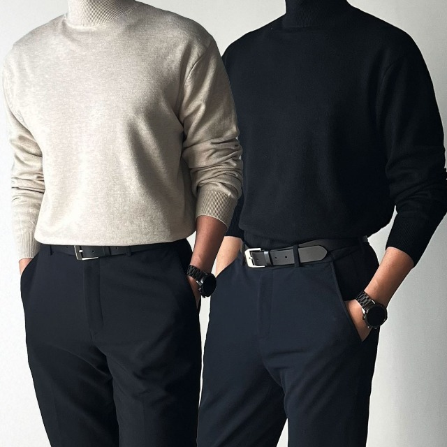 [라일리] Rly 남자 직장인 출근 룩 겨울 데일리 반목 폴라 니트 티