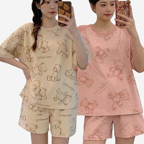 [고급소재] 1+1 반팔 반바지 여성 잠옷 상하세트 (2벌세트)