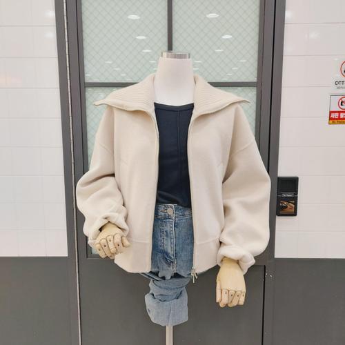 [반에이크] 배색 기모안감 집업가디건_VB2ZKCQ307Z
