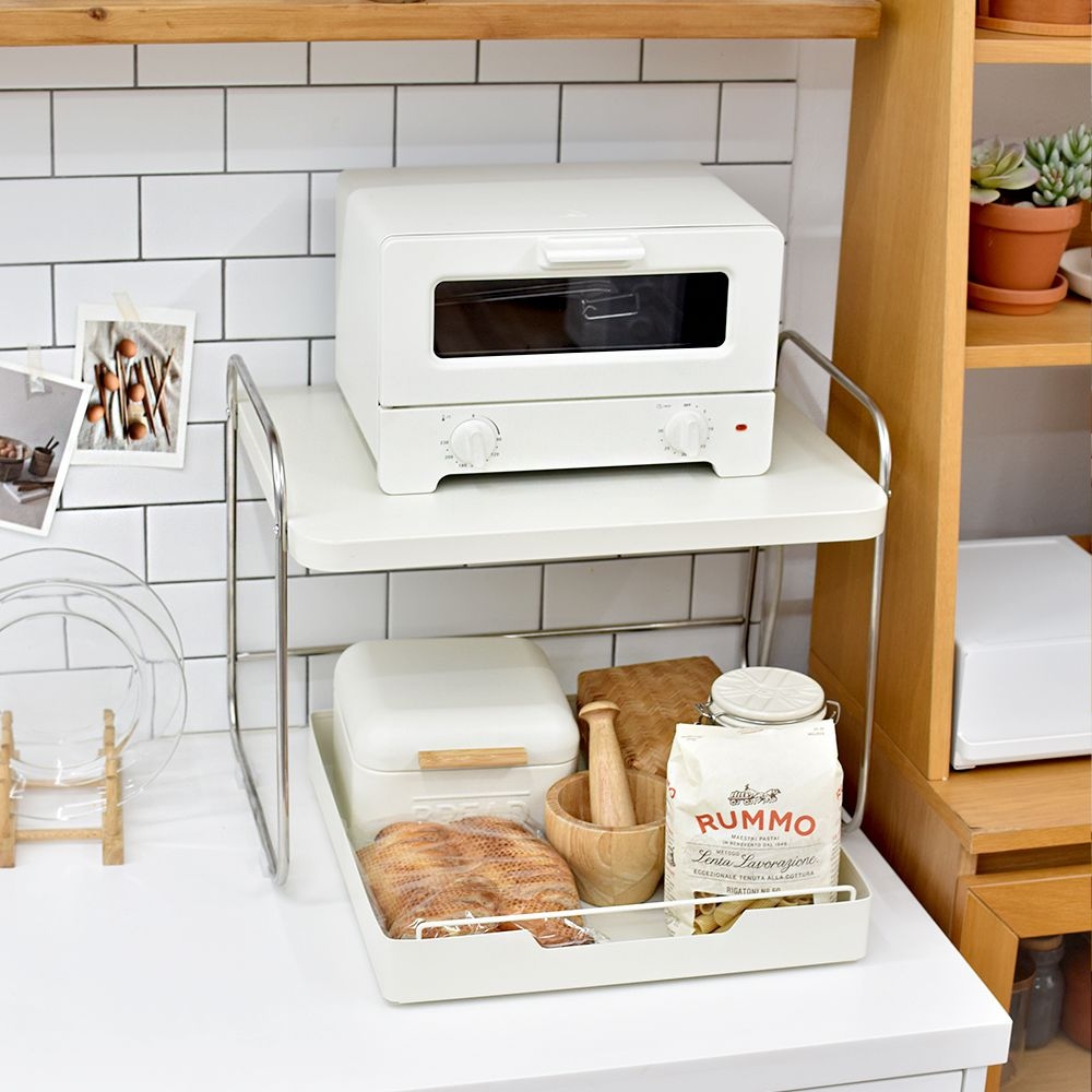 TEMU 2가지 색상 제공 - 확장형 2단 주방 정리대, 전자레인지 및 오븐용 | 블랙 메탈 카운터탑 오거나이저, 오픈 선반으로 양념, 주방용품, 조리기구, 가전제품 보관에 완벽 | 기능적 주방 정리대 | 블랙 메탈 프레임|전자레인지