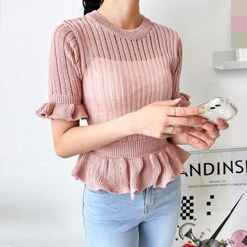 [엄지척]여자 여름 프릴 반팔니트 귀여운 스타일 데일리룩_19679892_667501