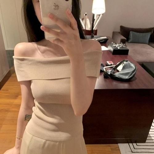[엄지척]여자 오프숄더 민소매 골지니트 여름니트 반팔니트티_19678588_667501