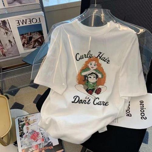 [신상오픈런]여성 기본 면혼합 박스핏 프린트 라운드넥 반팔티