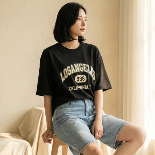 여성 심플 레터링 포인트 데일리 오버핏 반팔티